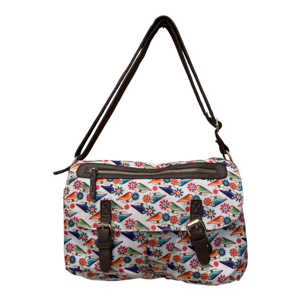 Bolsa Cruzada Con Diseño de Flores y Aves
