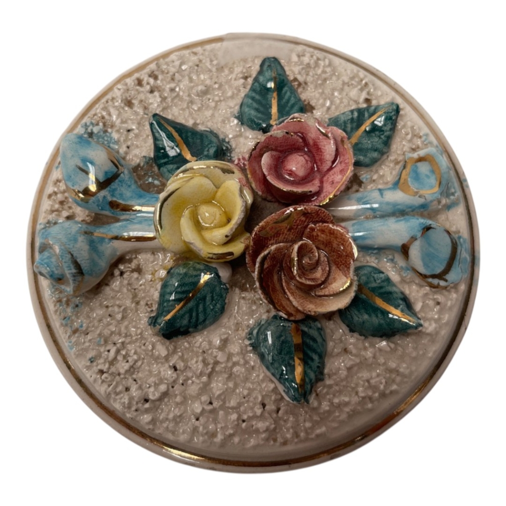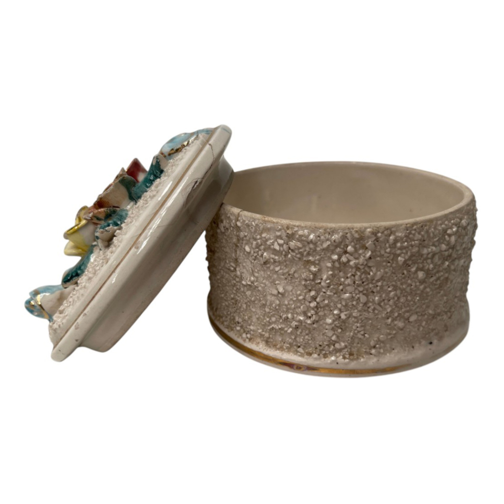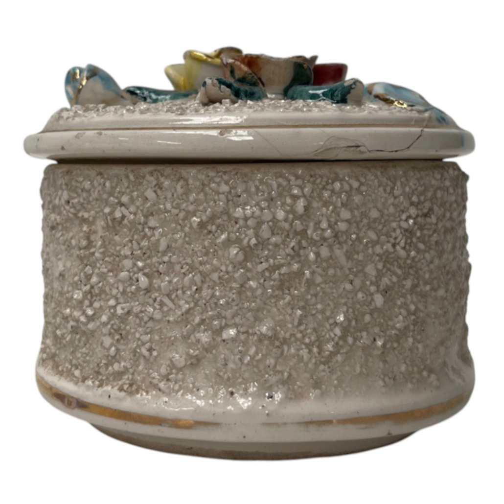 Caja Decorativa De Porcelana Con Textura y Diseño de Flores