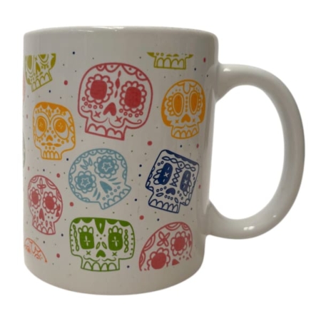 Taza con Diseño de Calaveras de Colores